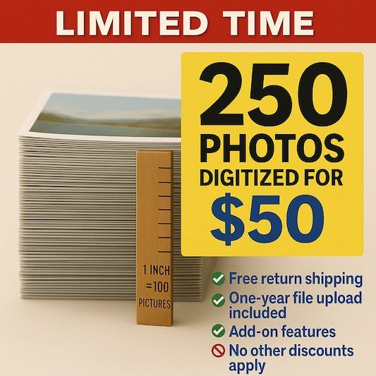 On that note — Mitch over at ScanMyPhotos just shared this with us: Get 250 photos scanned for $50 — and it includes free return shipping. “I’m just trying to make photo preservation easy and accessible for everyone,” he texted me the other day.