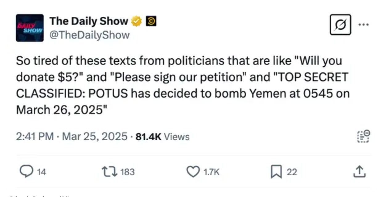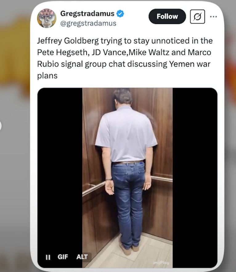 Everyone I know who makes a living as a journalist has to abide by a code of conduct, including standards and ethics most people donāt know exists. It appears Mr. Goldberg (the editor-in-chief at the Atlantic included in a top-secret government war chat group), closely followed those standards and acted responsibly, professionally, and morally. Can we say the same for the people in charge of top-secret intel?